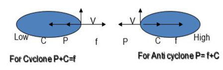 as wind that blows as a result of balance between PG Force & Cyclostrophic